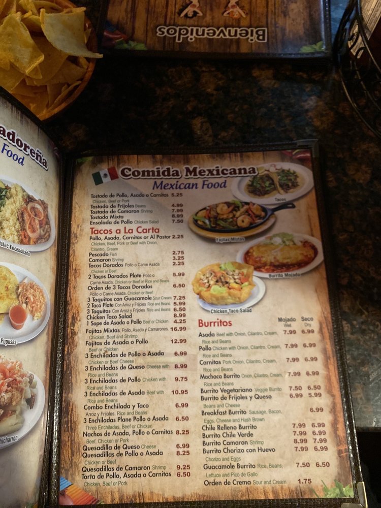 2 eggs, fried sweet plantain, queso fresco, sour cream, served with refried beans (or casamiento), avocado, Salvadorian Chorizo and handmade tortillas.